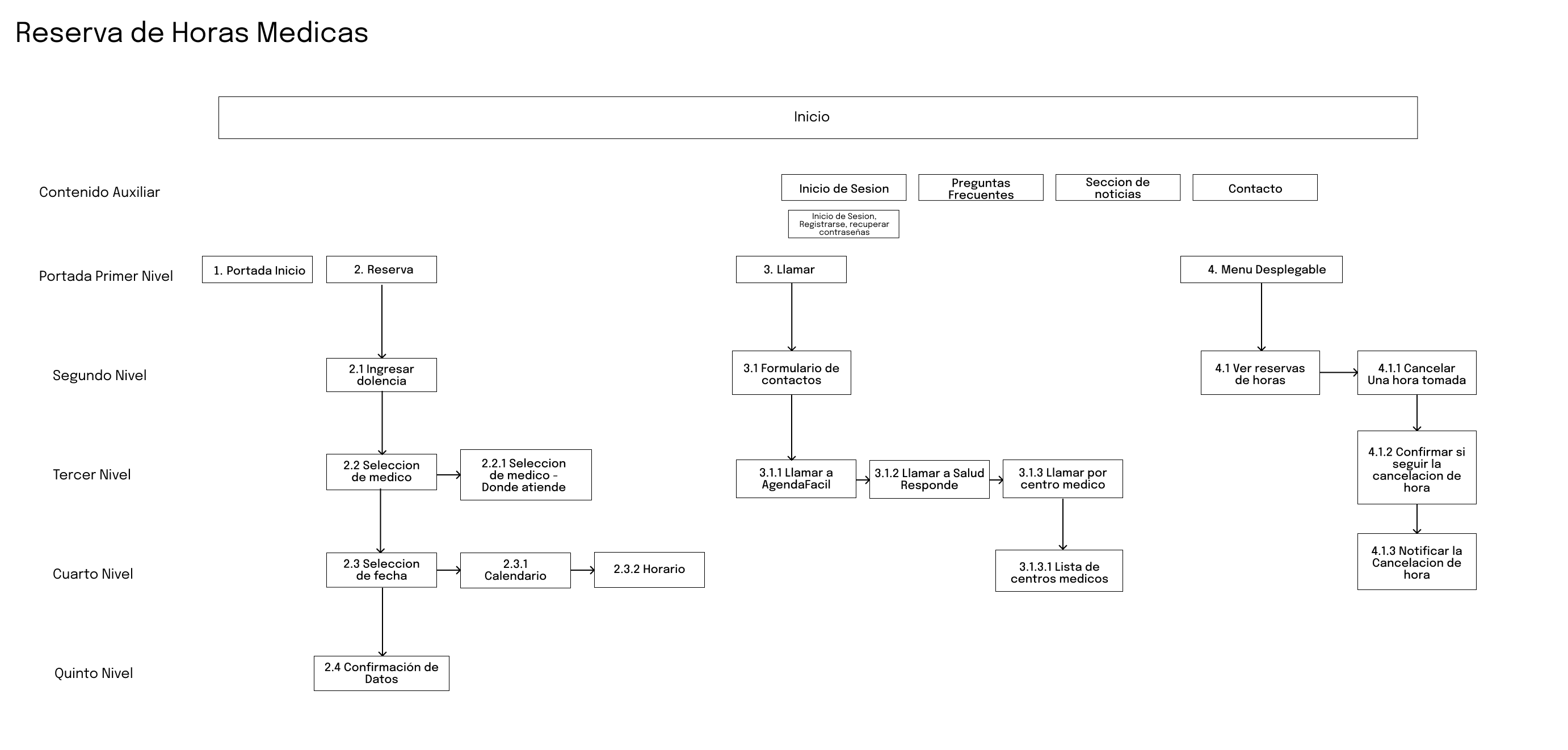 Para estructurar la experiencia, se diseñó un mapa de navegación, el cual organizó la jerarquía de pantallas y flujos de interacción, asegurando una lógica simple y coherente.