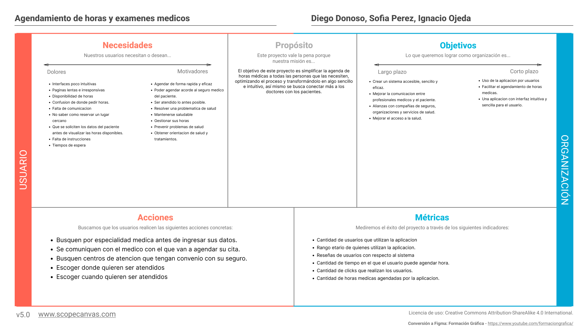 El proyecto comenzó con la elaboración de un scope canvas, en el cual se delimitaron los objetivos, los usuarios, las funcionalidades y las restricciones, garantizando un enfoque realista y centrado en el valor para el usuario